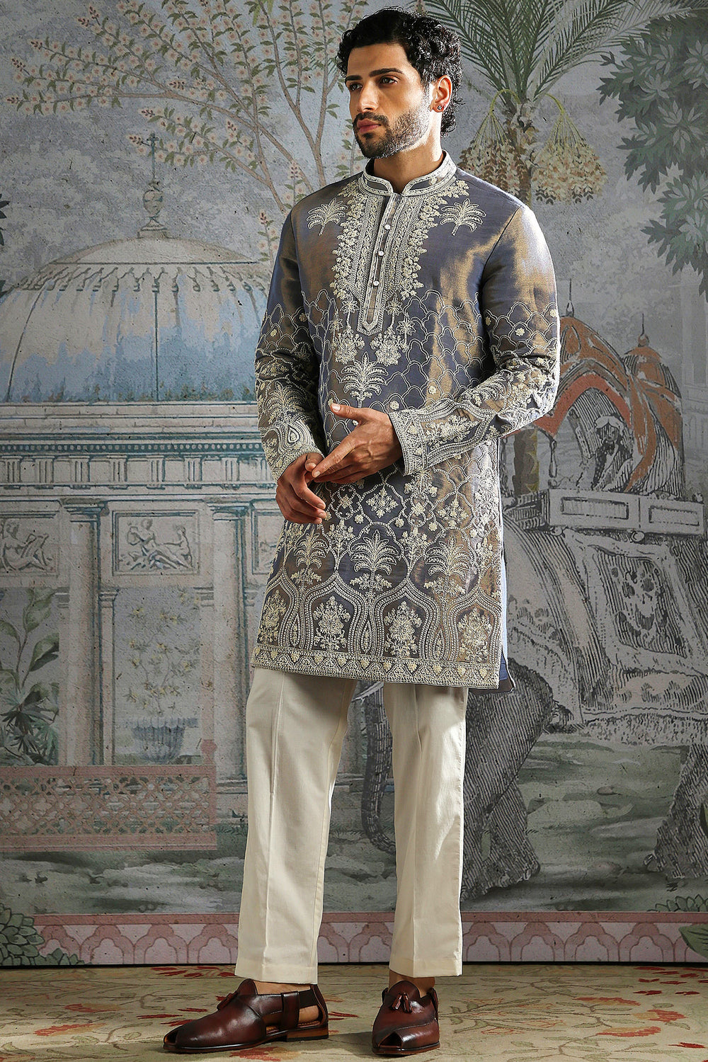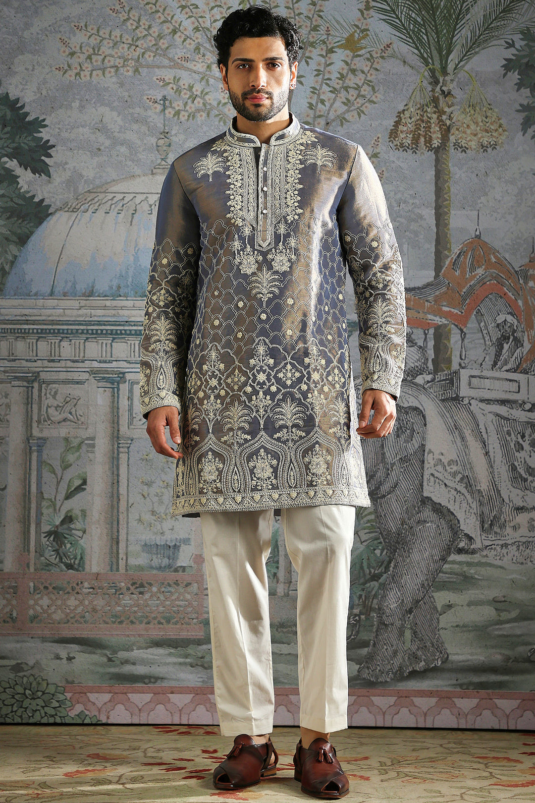 Steel Grey Heritage Embroidered Kurta Set